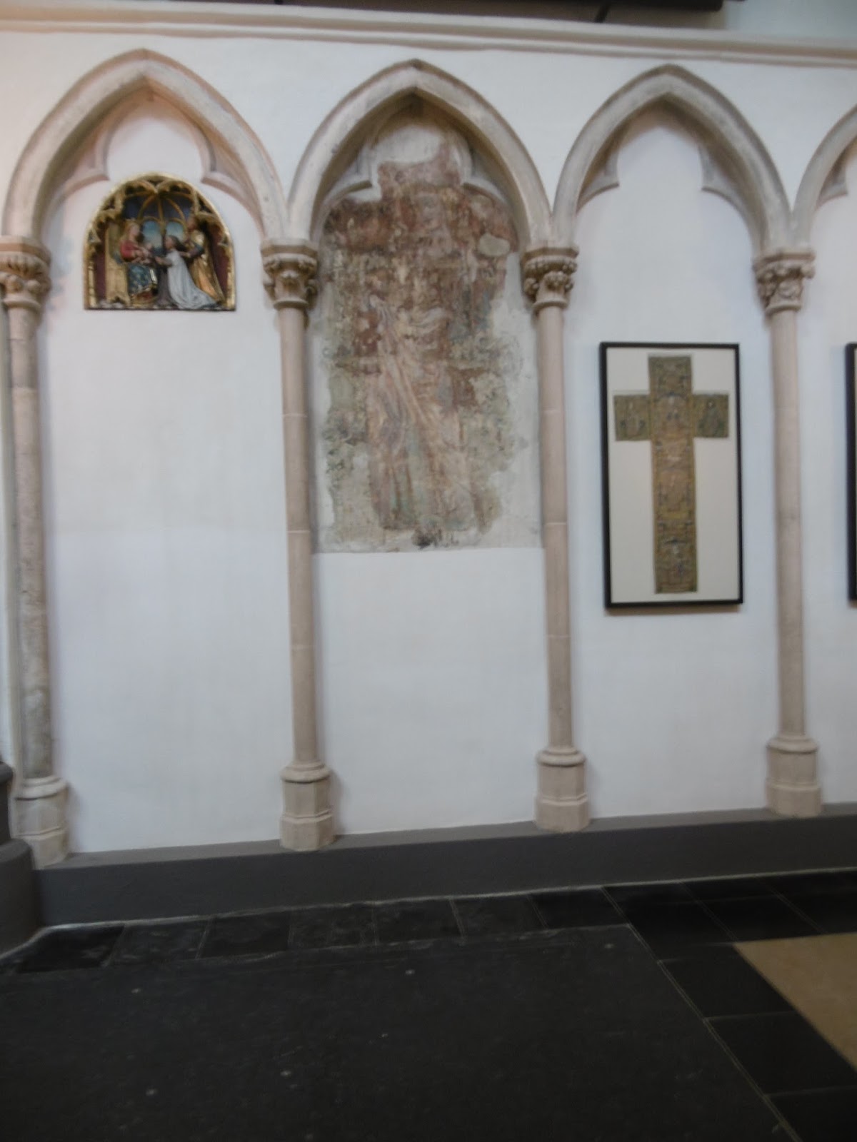 The newly restored apse of the Onze Lieve Vrouwekirk was open so I went in to take at the colours and materials, the beautiful articulation of light and space and the marvelous brick vault. They have kept fragments of medieval painting which are part of the fabric and layers of the building's history.